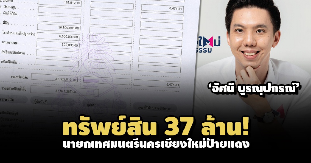 ทรัพย์สินรวม 37.8 ล้าน! ‘อัศนี บูรณุปกรณ์’ นั่งนายกเทศมนตรีนครเชียงใหม่ ลูก ‘ประพันธ์’ ได้ที่ดิน-บ้าน-ห้องชุด-ตึกแถวจากบิดาทั้งหมด นาฬิกา JLC 1 เรือน 2.5 ล้าน