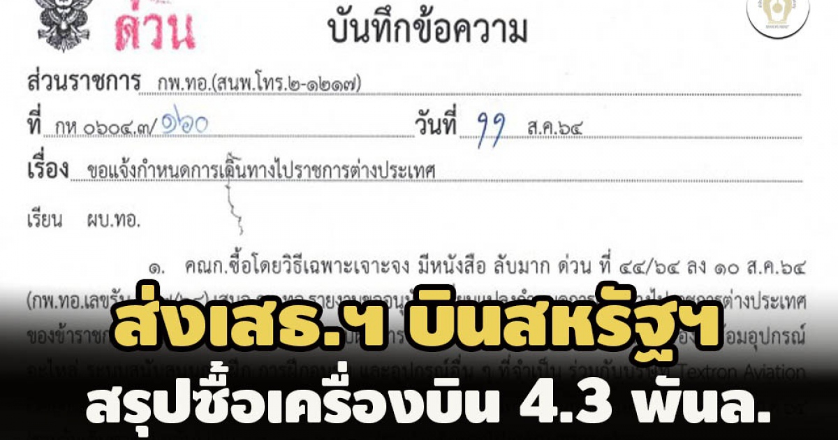 เผยข้อมูลลับ ผบ.ทอ. ไฟเขียวใช้งบ 1.6 ล. ส่งเจ้าหน้าที่ทหารระดับเสธฯ บินไปสหรัฐฯ ช่วงกลางเดือน ส.ค. นี้ ร่วมประชุมสรุปผลจัดซื้อเครื่องบินโจมตีเบา 8 ลำ วงเงิน 4,314 ล. กับเอกชนคู่สัญญา หลังก่อนหน้านี้สั่งให้เลื่อนไปก่อนรอรายงาน สอบ ป.ป.ช.เสร็จก่อน ด้านนายทหารผู้ติดตามแจง 'อิศรา' เคลียร์เรื่องยุติหมดแล้วถึงให้ไปได้