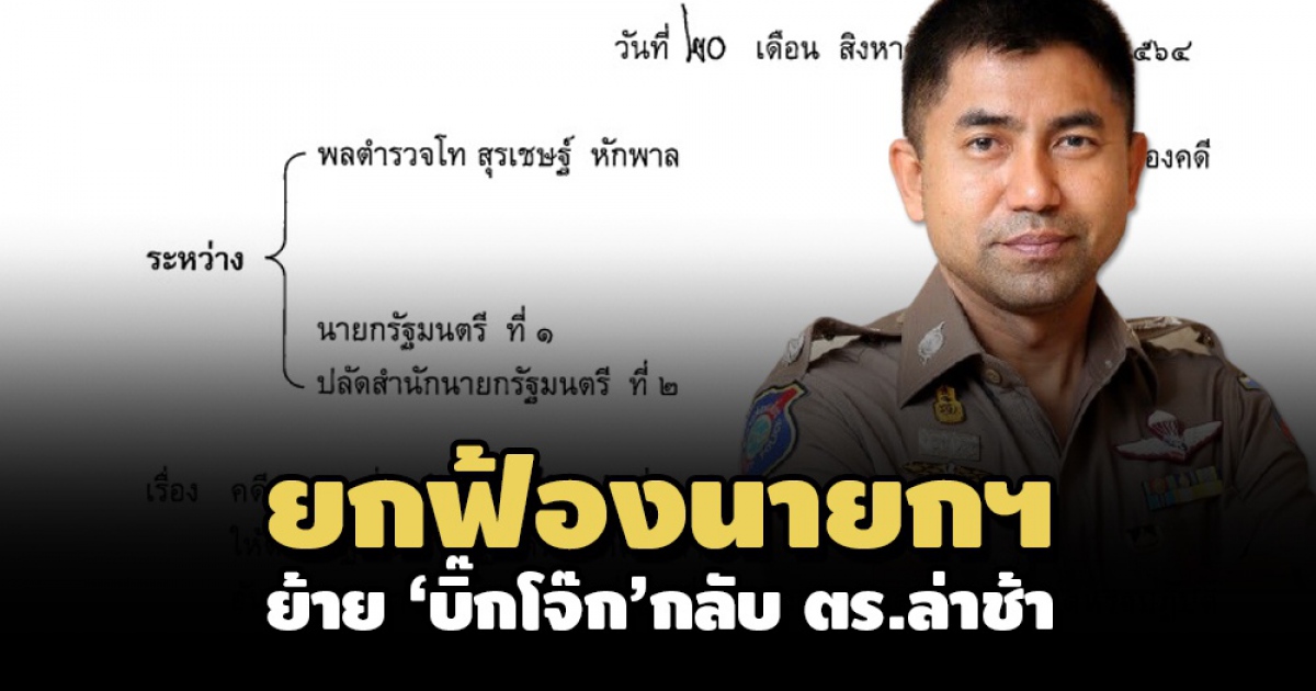 ผู้สื่อข่าวรายงานว่า เมื่อวันที่ 20 ส.ค. 2564 ศาลปกครองกลางมีคำพิพากษา คดีที่พลตำรวจโท สุรเชษฐ์ หักพาล ยื่นฟ้อง พล.อ.ประยุทธ์ จันทร์โอชา นายกรัฐมนตรี และปลัดสำนักนายกรัฐมนตรี เป็นผู้ถูกฟ้องคดีที่ 1-2 กรณีไม่พิจารณาดำเนินการให้ผู้ฟ้องคดีกลับไปปฏิบัติหน้าที่ราชการ ณ สำนักงานตำรวจแห่งชาติ