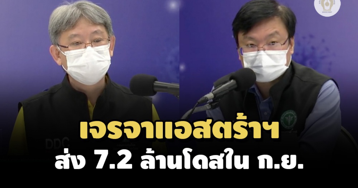 นพ.โอภาส การย์กวินพงศ์ อธิบดีกรมควบคุมโรค กล่าวถึงการจัดหาวัคซีนว่า การจัดสรรวัคซีนแอสตร้าเซนเนกาตั้งแต่มิ.ย. - ส.ค. ส่งมอบเฉลี่ยเดือนละประมาณ 5-6 ล้านโดส จากการเจรจราร่วมกับบริษัทแอสตร้าเซนเนก้า ก็ตอบสนอง โดยส่งสัญญาณว่าในเดือน ก.ย. เป็นต้นไปนั้น ไทยเจรจราขอเพิ่มจำนวนการจัดส่งมากขึ้น ซึ่งบริษัทตอบสนอง โดยบริษัทจะส่ง 7.2 ล้านโดส เชื่อว่าการเจรจาจะมีเข้ามาเรื่อยๆ
