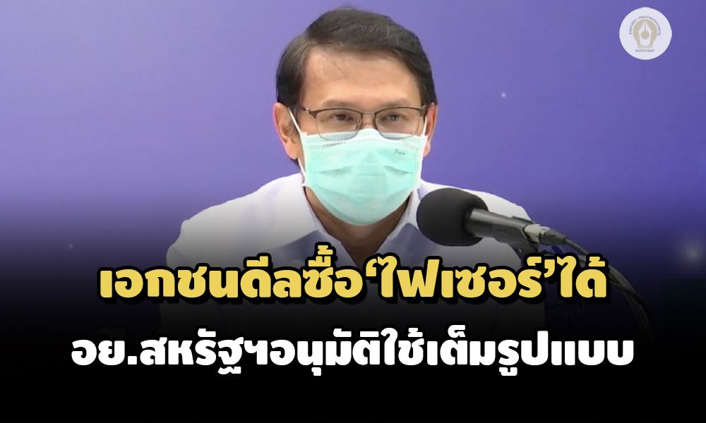 อย.ยินดีและเชิญชวน บริษัท ไฟเซอร์ ประเทศไทย ยื่นข้อมูลเพิ่มหลังได้รับอนุมัติจาก อย.สหรัฐฯแล้ว ยืนยันเร่งขึ้นทะเบียนใช้วัคซีนเต็มรูปแบบภายใน 30 วัน เปิดโอกาสเอกชนนำเข้า-ซื้อขายกับตัวแทนจำหน่ายได้เองโดยตรง