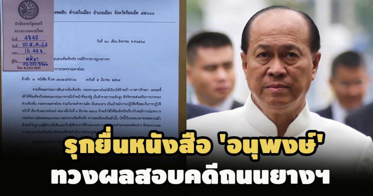 - 'อนุพงษ์' ลั่นใครทุจริตจัดการตามกม.! โชว์คำสั่ง มท.สอบคดีผู้รับเหมาแฉถนนยางฯ