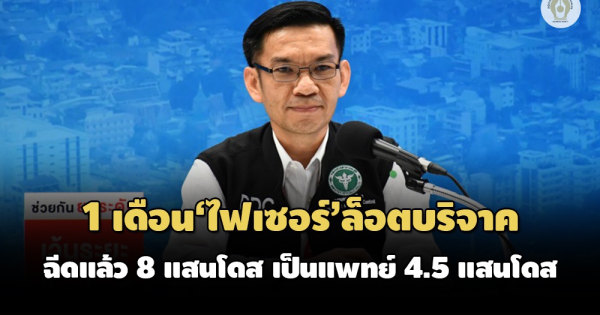 สธ.เผย 1 เดือนฉีด 'ไฟเซอร์' ล็อตบริจาค 1.5 ล้านโดสแล้ว 8.09 แสนโดส เป็นแพทย์ด่านหน้า 4.5 แสนโดสจากกรอบ 7 แสนโดส 'หมอเฉวตสรร' คาดหน่วยงานที่เกี่ยวข้องเร่งสำรวจกลุ่มตกหล่น - พบหมอบางส่วนเลือกฉีด 'แอสตร้าเซนเนก้า' แทน ส่วนวัคซีนที่จะเหลือจะถูกจัดสรรให้กลุ่มเสี่ยง 608 ต่อไป ยันฉีดทัน ไม่มีสูญเปล่า