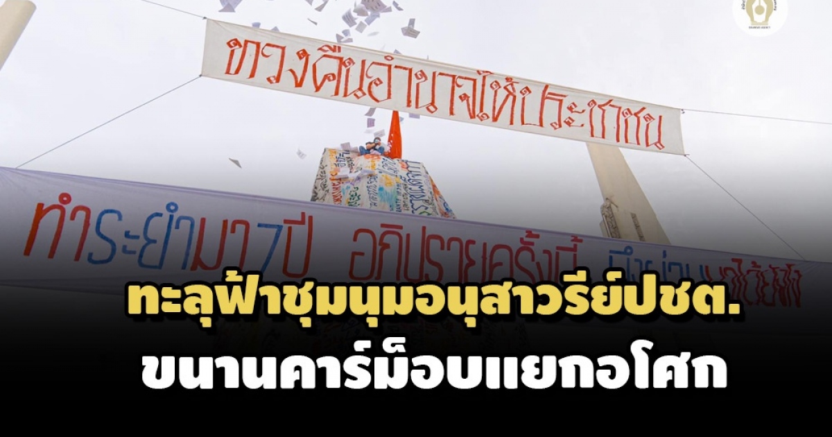 ทะลุฟ้าจัดชุมนุมบริเวณอนุสาวรีย์ประชาธิปไตย จัดกิจกรรมเชิงสัญลักษณ์ ย้ำ 3 ข้อเรียกร้อง นายกฯตำแหน่ง-รัฐธรรมนูญฉบับประชาธิปไตย-ปฏิรูปสถาบัน ขนานคาร์ม็อบเครือข่ายไล่ประยุทธ์ 'ณัฐวุฒิ-สมบัติ'เปรยขอ 1 สัปดาห์จุดกระแสให้ติด เตรียมจัดม็อบใหญ่ 19 ก.ย. ส่วนทะลุแก๊ซดินแดงยังคงเดือด เจ้าหน้าที่เข้ากระชับพื้นที่บุกรวบกลุ่มวัยรุ่น ทะลุแก๊สเผารถตำรวจพร้อมตั้งแนวรับ