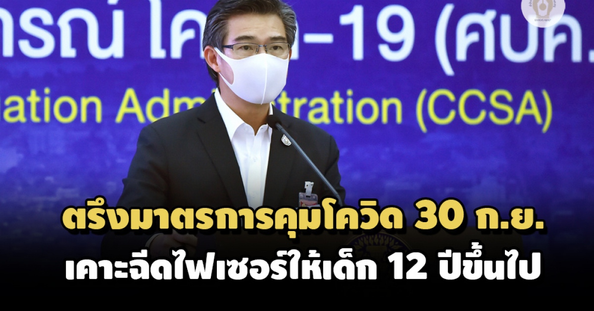 ศบค.ตรึงทุกมาตรการถึง 30 ก.ย. คง 29 จังหวัดสีแดงเข้ม เห็นชอบใช้สถานศึกษาเป็นจุดฉีดไฟเซอร์ 2 เข็มให้นักเรียน 12-17 ปีขึ้นไป คลังโชว์ลดหย่อนภาษี-เติมเงินใส่เป๋าตัง หนุนให้คนเข้าถึง ATK มากขึ้น