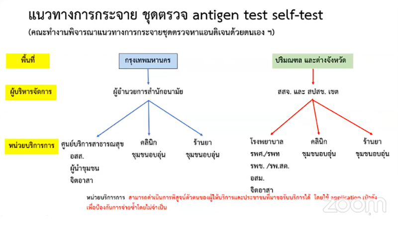 ส่วนแผนการกระจาย ATK นพ.อภิชาติ รอดสม รองเลขาธิการ สปสช. กล่าวว่า เบื้องต้น สปสช.มีแผนจะกระจาย ATK จำนวน 8,195,600 ชุดก่อน และสำรองที่ส่วนกลาง 304,400 ชุด โดยข้อมูลรายงานล่าสุดมีหน่วยบริการและหน่วยงานต่างๆ ที่ร่วมกระจาย ATK ให้กับประชาชน กว่า 1,000 แห่ง อาทิ โรงพยาบาล โรงพยาบาลส่งเสริมสุขภาพ (รพ.สต.) ศูนย์บริการสาธารณสุข คลินิกเอกชนและร้านยาที่เข้าร่วมโครงการ