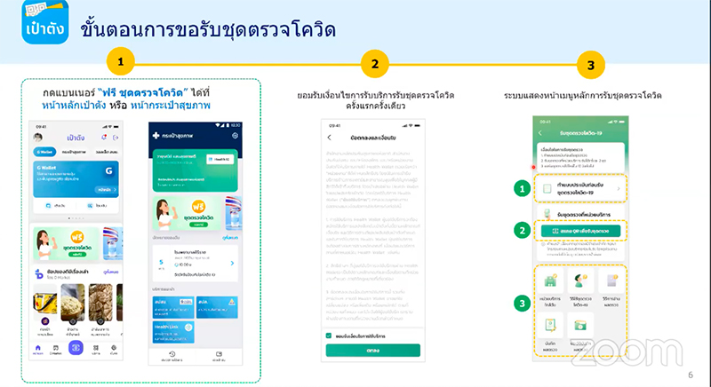 สปสช.ได้ร่วมมือกับธนาคารกรุงไทยในการพัฒนาระบบภายในแอปพลิเคชัน ‘เป๋าตัง’ เอาไว้ให้ประชาชนได้ขอเข้ารับชุดตรวจ ATK ใกล้บ้าน อย่างไรก็ตามการใช้งานแอปพลิเคชันต้องผ่านหลายกระบวนการ ซึ่งขอเรียนว่ากระบวนต่างๆ ที่เราจัดทำ เพื่อป้องกันปัญหาที่จะเกิดขึ้น บางครั้งอาจดูยุ่งยากบ้าง ซึ่งทุกคนสามารถให้ความเห็นกันมาได้ และ สปสช.จะนำไปประสานปรับปรุงระบบต่อไป