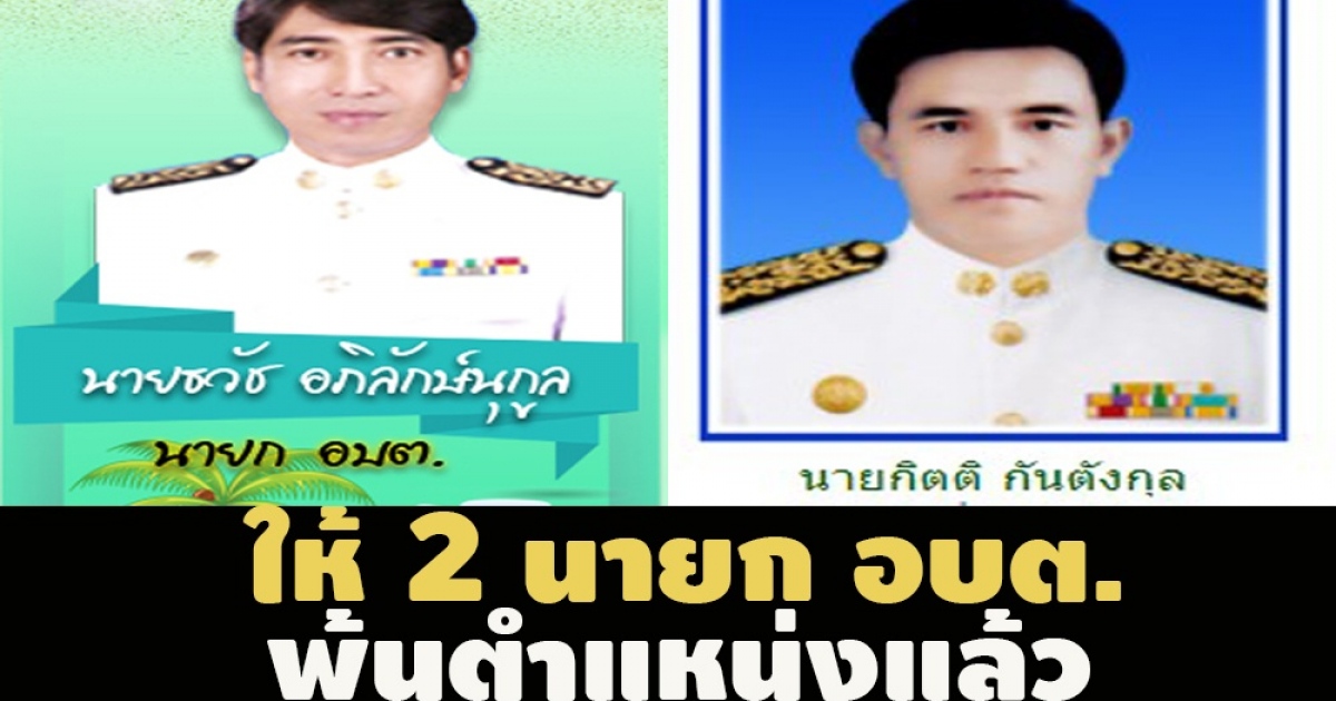 ผู้ว่าฯ ตรัง ลงนามคำสั่งให้ 'ธวัช อภิลักษ์นุกูล' นายก อบต.นาเกลือ อำเภอกันตัง 'กิตติ กันตังกุล' นายก อบต. กันตังใต้ พ้นตำแหน่งแล้ว หลังถูกคณะกรรมการ ป.ป.ช. ชี้มูลความผิดทางอาญาไปก่อนหน้านี้ ทั้ง 2 ราย มีสิทธิ์โต้แย้งคำสั่งยื่นศาลปกครองสงขลา ภายใน 90 วัน