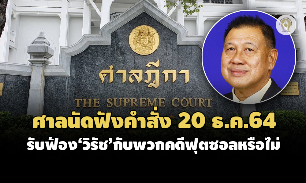 ศาลฎีกาฯ นัดฟังคำสั่งประทับรับฟ้องคดีฟุตซอลหรือไม่ 20 ธ.ค.2564 เวลา 10.00 น. รองโฆษกฯ อสส. แจงขั้นตอนกฎหมาย 'วิรัช - ทัศนี - ทัศนียา' 3 ส.ส.พรรคพลังประชารัฐ ลุ้นต้องหยุดปฏิบัติหน้าที่หรือไม่ในวันเดียวกัน ส่วนวันนี้ อสส.ยื่นฟ้องผู้ต้องหาคดีนี้รวม 87 คน - ป.ป.ช.ขนเอกสารนับแสนแผ่นประกอบสำนวนคดี