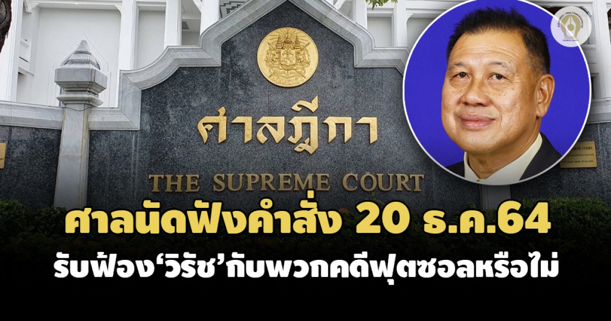 อสส.สั่งฟ้อง 7 สำนวน‘วิรัช-พวก’ 84 รายคดีฟุตซอล-นำตัวส่งศาลฎีกาฯภายใน มิ.ย.64
