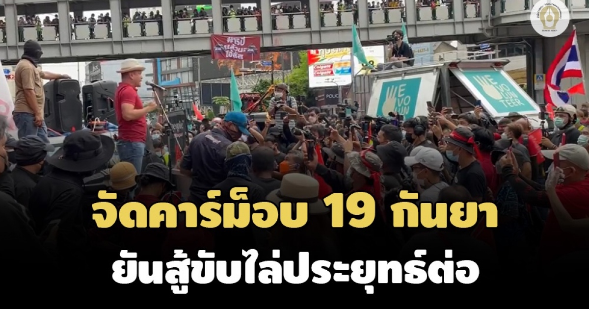 ผู้สื่อข่าวรายงานว่า เมื่อวันที่ 19 ก.ย.2564 นายณัฐวุฒิ ใสยเกื้อ แกนนำกลุ่มแนวร่วมประชาธิปไตยต่อต้านเผด็จการแห่งชาติ (นปช.) และนายสมบัติ บุญงามอนงค์ แกนนำนักเคลื่อนไหวการเมือง และกลุ่มแนวร่วมจากกลุ่มต่างๆ จัดกิจกรรม 'คาร์ม็อบ 19 กันยา ขับรถยนต์ชนรถถัง' เป็นการชุมนุมขับไล่รัฐบาล และแสดงพลังต่อต้านการรัฐประหาร ในวาระครบรอบ 15 ปี เหตุการณ์รัฐประหาร 19 ก.ย. 2549 โดยเริ่มต้นที่แยกอโศก ในเวลา 14.00 และจบที่ อนุสาวรีย์ประชาธิปไตย ในเวลา 18.00 น.