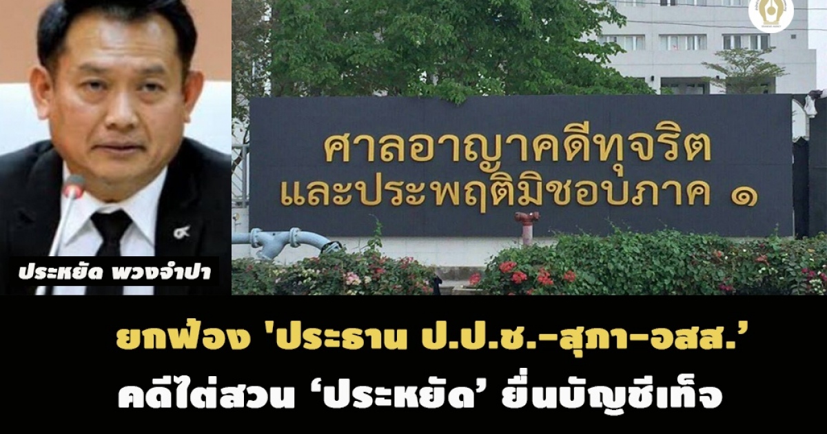 ศาลคดีทุจริตฯ ภาค 1 นัดไต่สวนมูลฟ้องคดี ‘ประหยัด’ ฟ้อง 'ปธ.ป.ป.ช.-สุภา-อสส.’ ไต่สวนยื่นบัญชีเท็จ 227 ล้าน มิชอบ ก่อนพิพากษายกฟ้อง