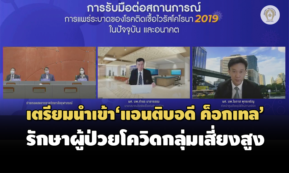 ราชวิทยาลัยจุฬาภรณ์เตรียมนำเข้า ‘แอนติบอดี ค็อกเทล’ ยาที่ถูกพัฒนาให้รักษาโควิดโดยตรง มีความจำเพาะต่อโคโรนาไวรัส รักษาโควิดได้ทุกสายพันธ์ เพื่อลดอาการป่วยหนัก-เสียชีวิตกลุ่มผู้ป่วยกลุ่มเสี่ยงสูง เช่น ผู้สูงอายุ โรคเรื้อรัง