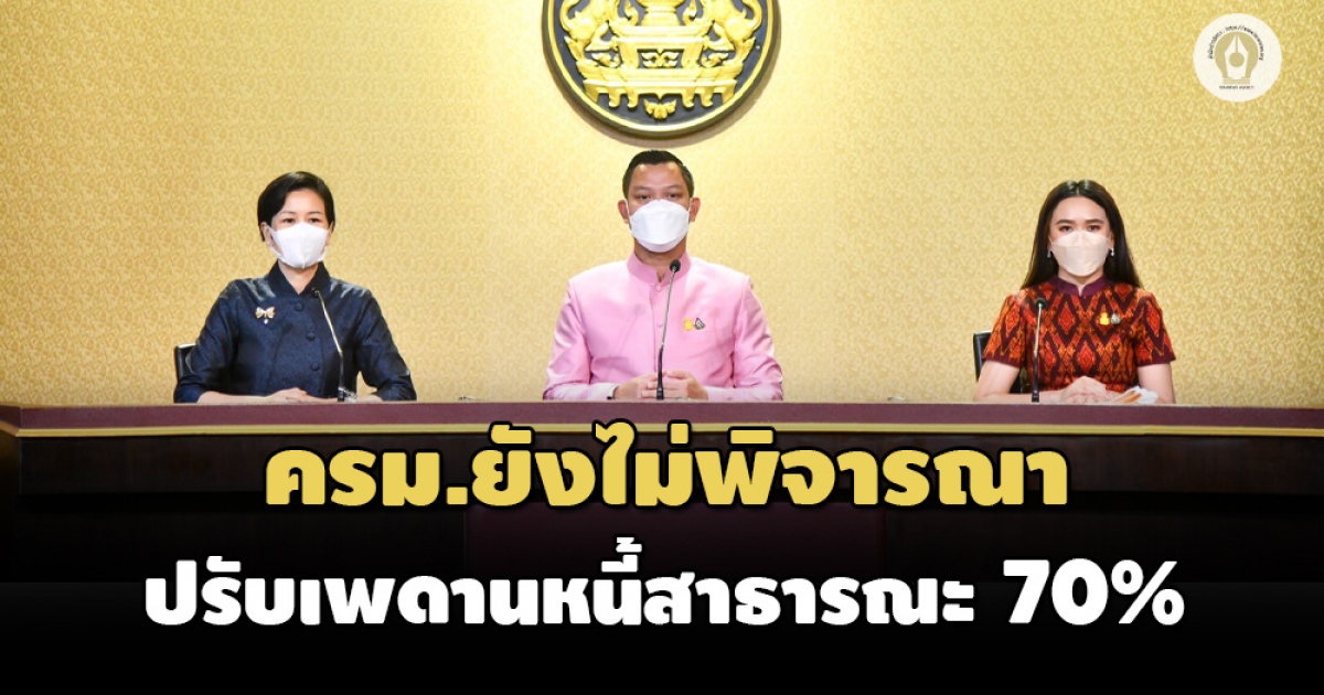 ครม.ยังไม่พิจารณาวาระปรับเพดานหนี้สาธารณะเป็น 70% 'ธนกร' แจงแทนนายกฯ ยืนยัน ทำเพื่อเพิ่มพื้นที่การคลัง - หากต้องกู้จะทำเท่าที่จำเป็น