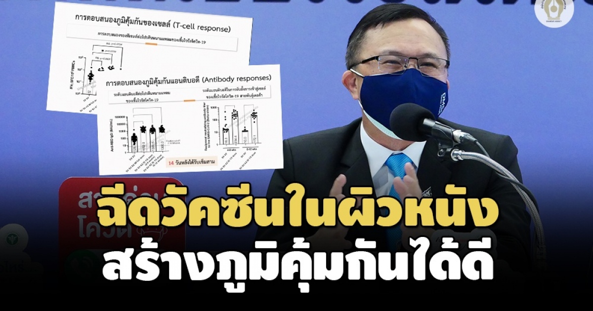 สธ.เผยผลวิจัยฉีดวัคซีนกระตุ้นในผิวหนัง ใช้วัคซีนน้อย-สร้างภูมิคุ้มกันได้ดี เป็นอีกตัวช่วยหากวัคซีนมีจำกัด ย้ำปัจจุบันยังฉีดวัคซีนป้องกันโควิดเข้ากล้ามเนื้อ แต่อาจมีการพิจารณาฉีดวัคซีนในผิวหนังเมื่อมีงานวิจัยรองรับเพียงพอ หรือต้องการเร่งฉีดวัคซีน