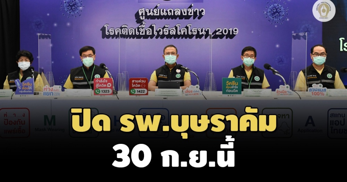 สธ.ประกาศปิดโรงพยาบาลบุษราคัม ในวันที่ 30 ก.ย.นี้ หลังจำนวนผู้ติดเชื้อลดลง สรุป 130 วัน รักษาผู้ป่วยทั้งหมด 20,436 ราย ยันมีเตียงเพียงพอ ไม่กระทบผู้ติดเชื้อใน กทม.-ปริมณฑล หลังจากนี้
