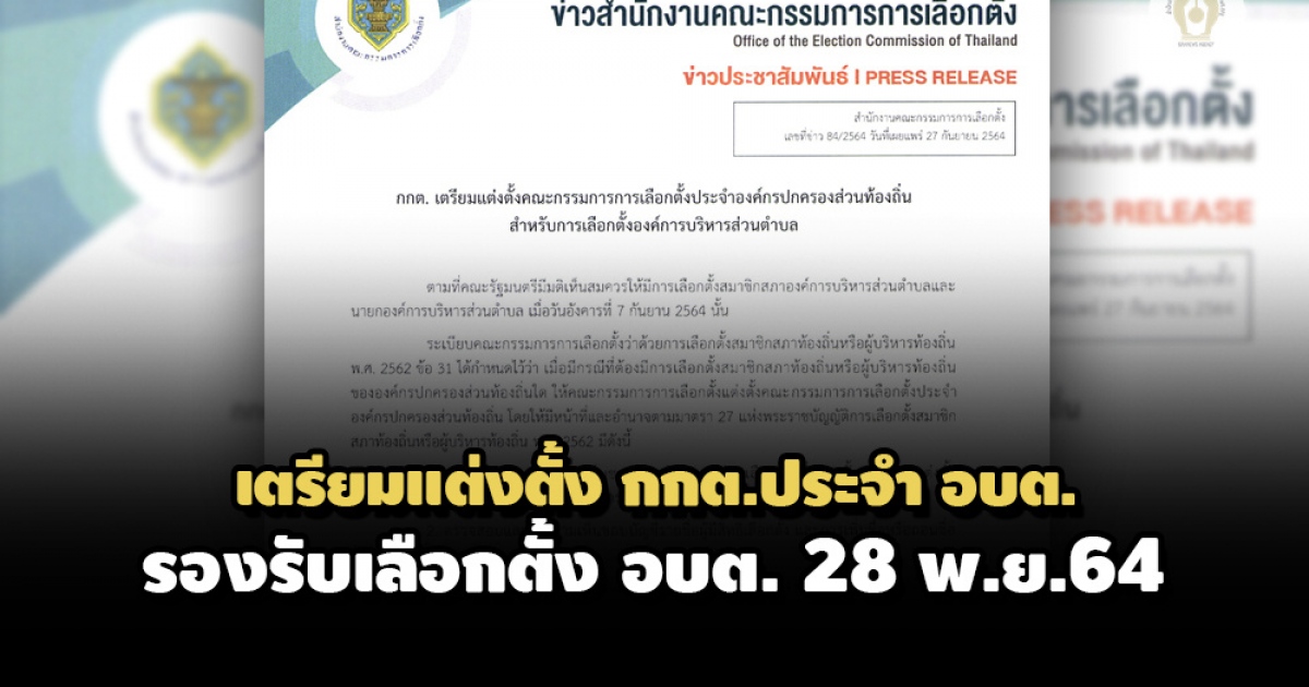 เตรียมแต่งตั้ง กกต.ประจำ อบต. 5,300 แห่ง 15,900 คน รองรับการเลือกตั้ง 28 พ.ย.2564
