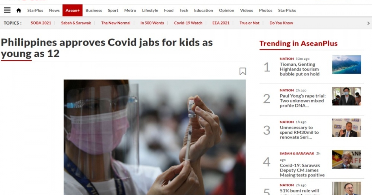 เรียบเรียงจาก:https://www.france24.com/en/france/20210928-france-s-sanofi-halts-work-on-mrna-covid-vaccine-amid-rivals-success,https://www.thestar.com.my/aseanplus/aseanplus-news/2021/09/28/philippines-approves-covid-jabs-for-kids-as-young-as-12