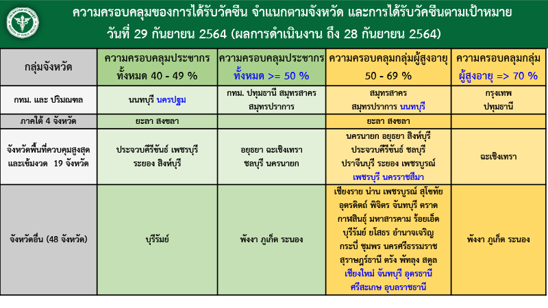 แต่หากแยกความครอบคลุมผู้สูงอายุ มีการฉีดเกิน 70% แล้ว 6 จังหวัด ประกอบด้วย กทม. ปทุมธานี ฉะเชิงเทรา พังงา ภูเก็ต ระนอง