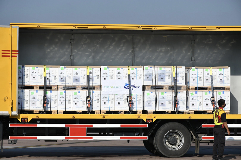 ผู้สื่อข่าวรายงานว่า เมื่อวันที่ 29 ก.ย. 2564 นายอนุทิน ชาญวีรกูล รองนายกรัฐมนตรี และ รมว.สาธารณสุข, นายแพทย์โอภาส การย์กวินพงษ์ อธิบดีกรมควบคุมโรค คณะผู้บริหารจากกระทรวงฯ และผู้แทนจากบริษัทไฟเซอร์ เดินทางมารับมอบวัคซีนไฟเซอร์ จำนวน 2,000,700 โดส จากการสั่งซื้อ 30 ล้านโดส ซึ่งขนส่งจากประเทศสหรัฐอเมริกาถึงประเทศไทยโดยสายการบินดีเอชแอล (DHL) เมื่อเวลา 04.35 น. ที่สนามบินสุวรรณภูมิ