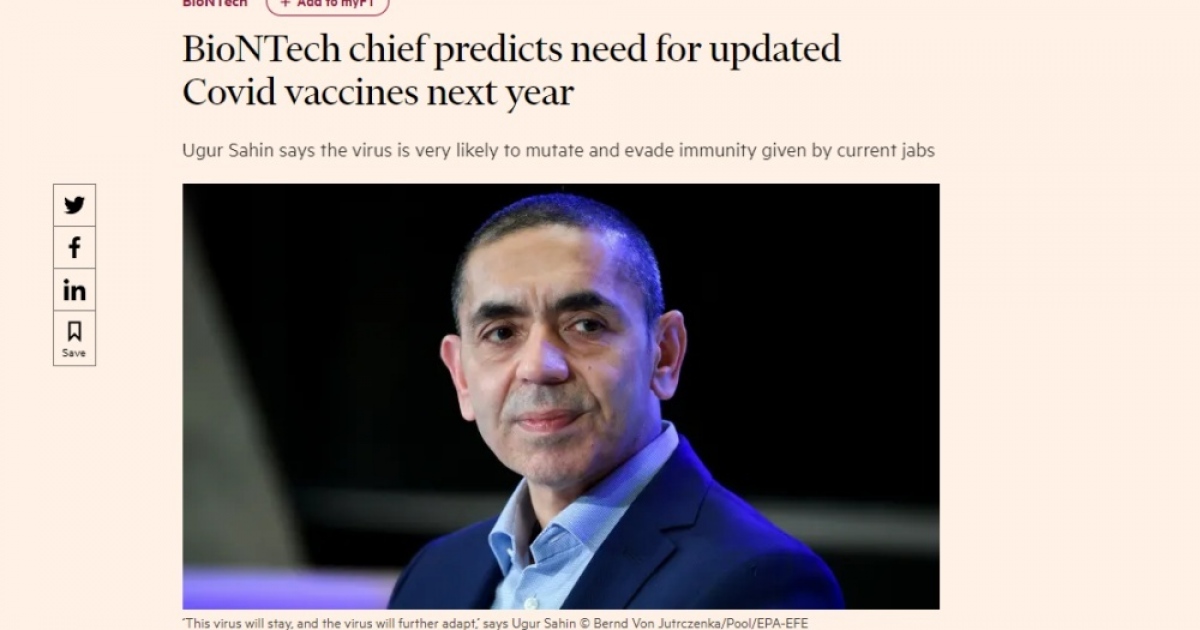 โดยนายอูคูร์ ซาฮิน ผู้บริหารบริษัทไบออนเท็คได้ให้สัมภาษณ์กับสำนักข่าวไฟแนนเชียลไทม์ว่าเมื่อเวลาที่ผ่านพ้นไป การกลายพันธุ์ที่สามารถหลบหลีกภูมิคุ้มกันได้จะเกิดขึ้น ซึ่งจะส่งผลทำให้วัคซีนที่มีอยู่ในปีนี้นั้นจะไม่เป็นที่ต้องการโดยสิ้นเชิง แต่ว่าในช่วงกลางปีหน้า สถาการณ์ก็อาจจะมีความแตกต่างกันออกไป