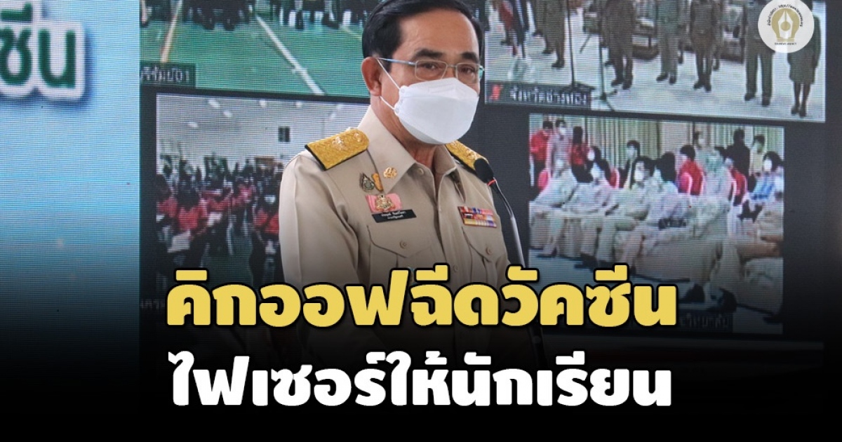 นายกรัฐมนตรี เป็นประธานพิธีคิกออฟฉีดไฟเซอร์ให้นักเรียนช่วงอายุ 12-17 ปี เตรียมรับเปิดเทอม 1 พ.ย.นี้ ย้ำปลอดภัย ยันวัคซีนมีเพียงพอตามเป้า 150-170 ล้านโดสในปีหน้า มีเด็กแสดงความประสงค์แล้วกว่า 3.6 ล้านคน