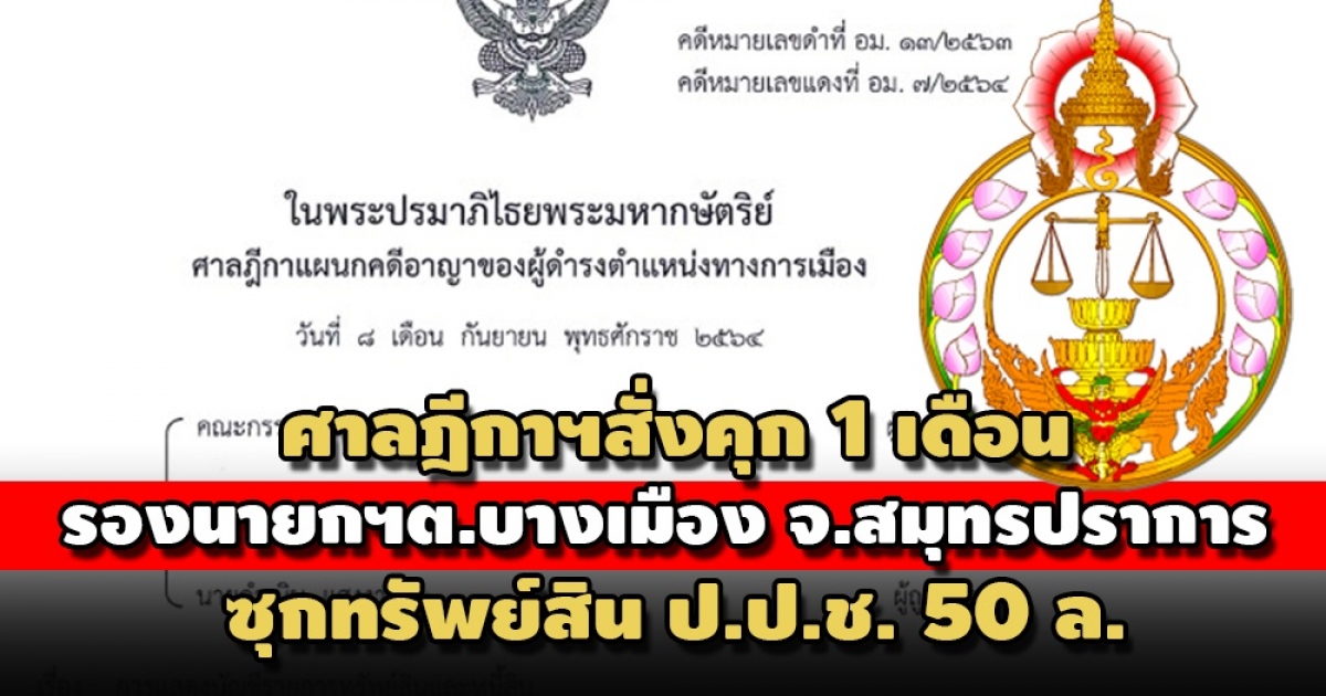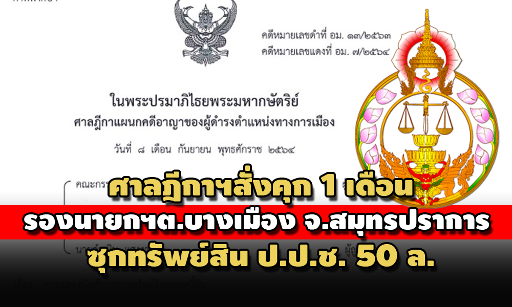 ยื่นบัญชีฯเท็จ! ศาลฎีกาฯคุก 1 เดือน นายก อบต.บางพรม จ.สมุทรสงคราม รอลงโทษ 1 ปี