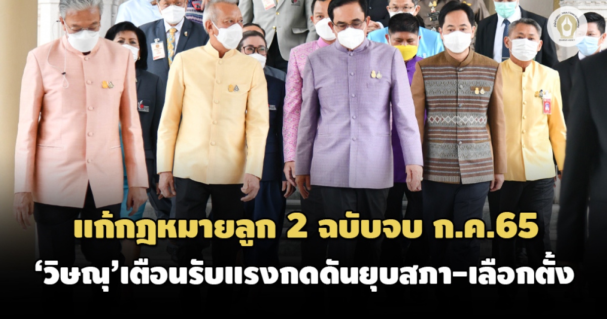 ‘วิษณุ’ กางไทม์ไลน์ปี 65 แก้กฎหมายลูก 2 ฉบับจบกระบวนการเดือน ก.ค.เตือนให้เตรียมรับมือแรงกดดันบี้ยุบสภา-เลือกตั้งทันที ส่วน ส.ค.รับศึกวาระ 8 ปี ‘บิ๊กตู่’