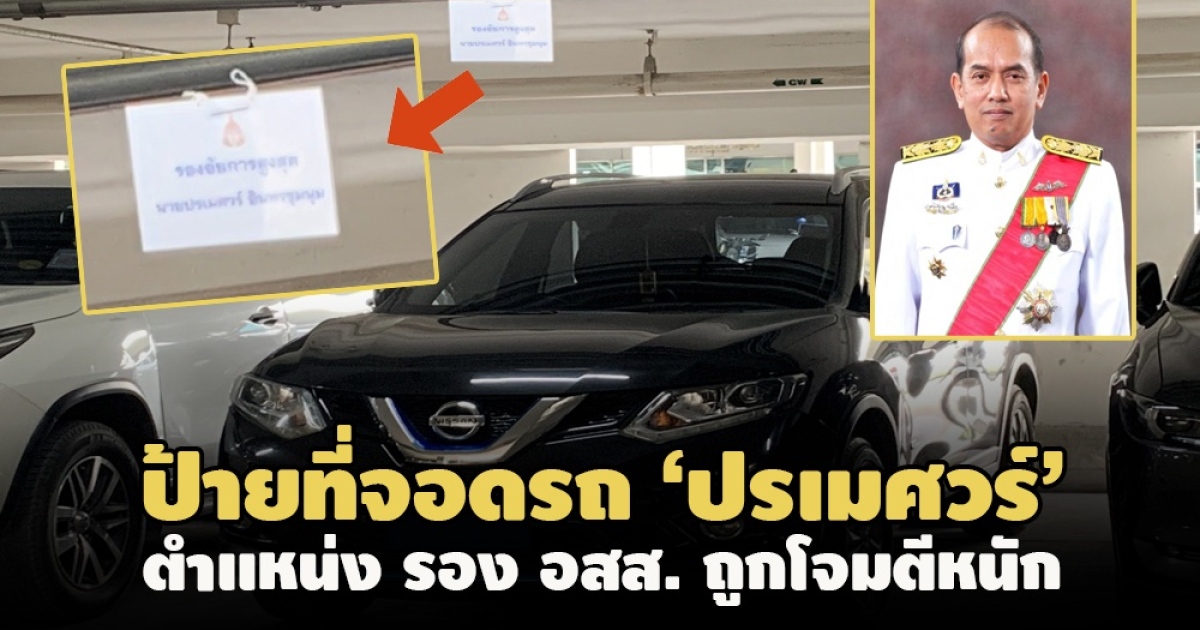 • ป้ายที่จอดรถ ‘ปรเมศวร์’ โชว์หราตำแหน่ง รอง อสส. ถูกโจมตีหนัก - สั่งปลดออกแล้ว