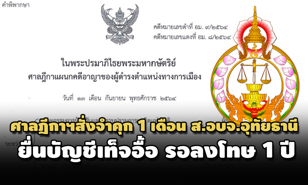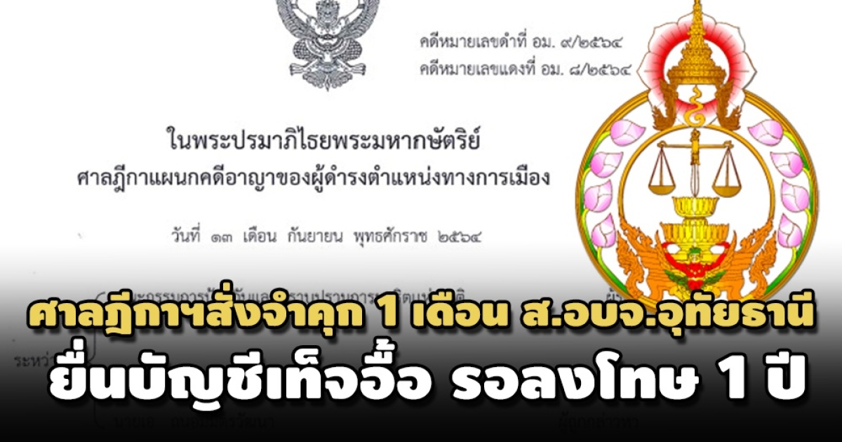 ให้พ้นตำแหน่ง!ศาลฎีกาฯคุก 1 เดือน นายก อบต. จ.อุบลฯ ซุกหุ้นรับเหมา 1 ล.-รอลงโทษ