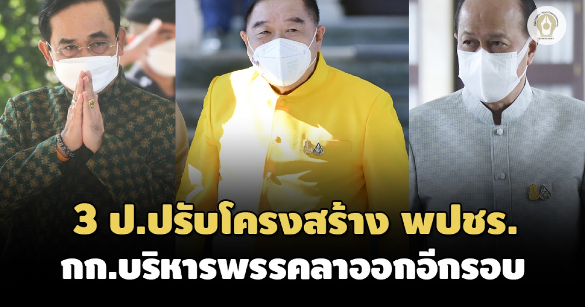 3 ป. ถก 6 รัฐมนตรี พปชร. รื้อโครงสร้างใหญ่อีกรอบ ‘บิ๊กป้อม’ เปิดทาง กก.บห.ลาออกกึ่งหนึ่ง ลั่นเรื่องเสียงไม่มีปัญหา เดี๋ยวจัดการเอง ดีเดย์ 26 ต.ค.นี้