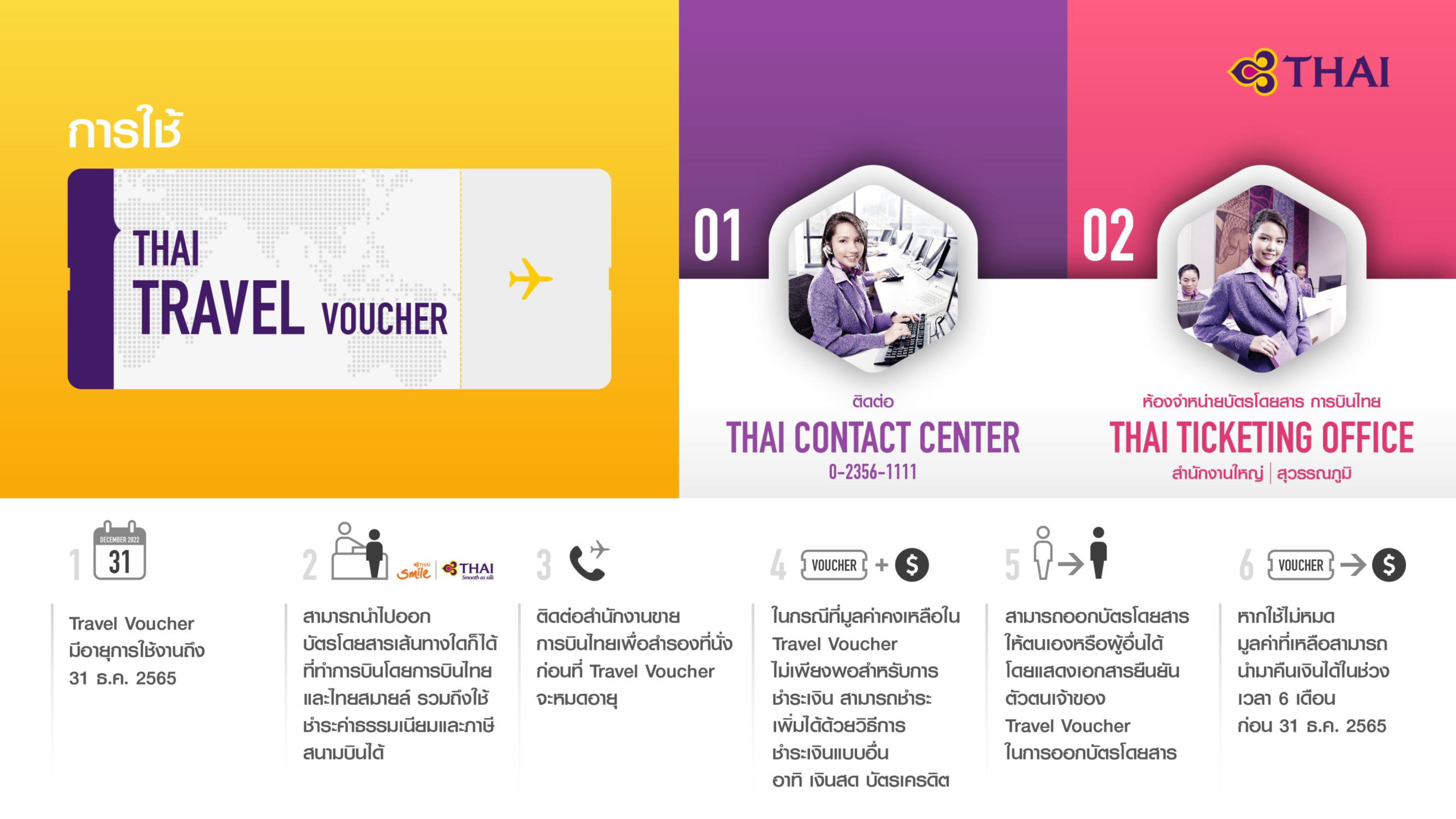 นายชาญศิลป์ ตรีนุชกร ผู้บริหารแผนฟื้นฟูกิจการ บริษัท การบินไทย กล่าวว่า สำหรับลูกค้าบริษัท การบินไทย ที่ยังมีตั๋วค้างอยู่ ไม่ว่าจะเป็นบัตรโดยสาร และ Travel voucher นั้น ในส่วนของ Travel voucher จะใช้ได้ถึงสิ้นปี 2565 โดยสามารถนำมาแลกเป็นตั๋วของการบินไทย หรือตั๋วไทยสมายล์ได้ ส่วนบัตรโดยสารเดิมที่มีอยู่ก็สามารถใช้งานได้ ซึ่งช่องทางในการซื้อหรือเปลี่ยนแปลงบัตรโดยสารจะมี 4 ช่องทาง เช่น thaiairways.com หรือ Call center เป็นต้น