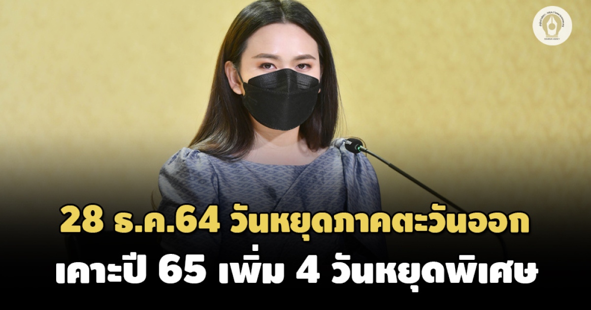 ครม.เคาะ 28 ธ.ค.2564 เป็นวันหยุด 8 จังหวัดภาคตะวันออก พร้อมเห็นชอบวันหยุดพิเศษ 4 วันปี 2565 เพื่อทำให้มีวันหยุดยาวเดือน ก.ค. และช่วงปลายปี