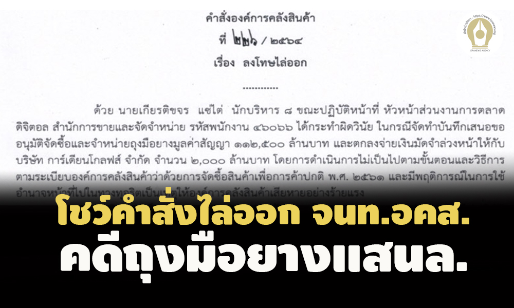 - เจาะผลสอบถุงมือยางแสนล.(2) บทบาทผู้บริหาร อคส.ปริศนา สั่งหาช่องทำสัญญา-จ่ายเงินสองพันล.