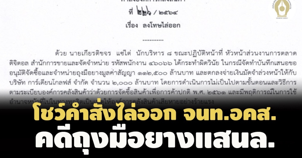 - เผยหนังสือลับคดีถุงมือยางแสนล.! อนุฯ ไต่สวน ป.ป.ช. แจ้งขอหลักฐานแต่งตั้ง ปธ.บอร์ด อคส.