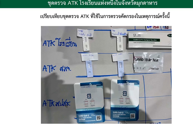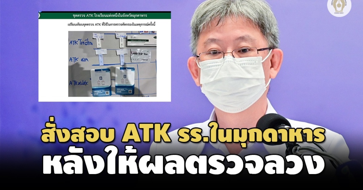 สธ.แจงกรณี ATK ให้ผลลวง หลังครู-นักเรียนโรงเรียนคำสร้อยพิทยาสรรค์ จ.มุกดาหาร เปรียบเทียบผลตรวจหาเชื้อ 3 ยี่ห้อ เผยชุดตรวจที่พบผลบวก เป็นของโรงเรียนจัดหาเอง พร้อมเดินหน้าตรวจสอบ ATK ที่มีปัญหา