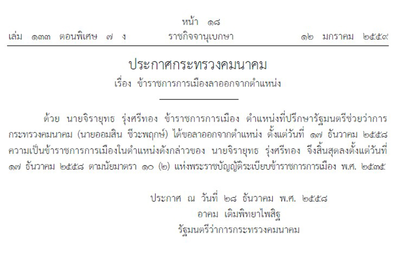 สำนักข่าวอิศรารายงานว่าจากการตรวจสอบพบ นายจิรายุทธได้รับแต่งตั้งเป็นที่ปรึกษารัฐมนตรีช่วยว่าการกระทรวงคมนาคม(นายออมสิน ชีวะพฤกษ์) และได้ลาออกเมื่อวันที่ 17 ธันวาคม 2558 (ดูเอกสาร)