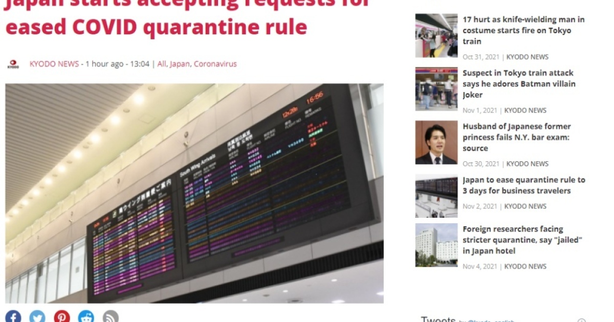 เรียบเรียงจาก:https://english.kyodonews.net/news/2021/11/4ddc6a10e923-japan-starts-accepting-requests-for-eased-covid-quarantine-rule.html