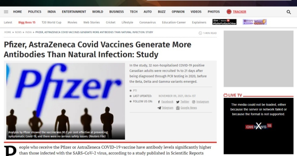 สำนักข่าวอิศรา (www.isranews.org) รายงานสถานการณ์เกี่ยวกับการระบาดของไวรัสโควิด-19 หรือโคโรน่าไวรัส ว่าที่ประเทศแคนาดานั้นได้มีรายงานผลการศึกษาว่าผู้ที่ได้รับวัคซีนไฟเซอร์หรือวัคซีนแอสตร้าเซนเนก้านั้น พบว่าจะมีระดับภูมิคุ้มกันที่เพิ่มสูงขึ้นมากกว่ากลุ่มคนที่ได้รับการติดเชื้อโควิด-19 โดยธรรมชาติ ซึ่งรายงานดังกล่าวนั้นถูกเผยแพร่บนวารสาร Scientific Reports ที่เผยแพร่เมื่อวันที่ 8 พ.ย.ที่ผ่านมา และมีผู้ที่ดำเนินการวิจัยคือทีมนักวิจัยจากมหาวิทยาลัยมอนทรีอัลในประเทศแคนาดา ซึ่งสำรวจพบว่าจำนวนสารภูมิคุ้มกันหรือแอนติบอดีที่เกิดขึ้นมานั้นยังคงมีประสิทธิภาพในการรับมือกับไวรัสโควิด-19 สายพันธุ์เดลต้า