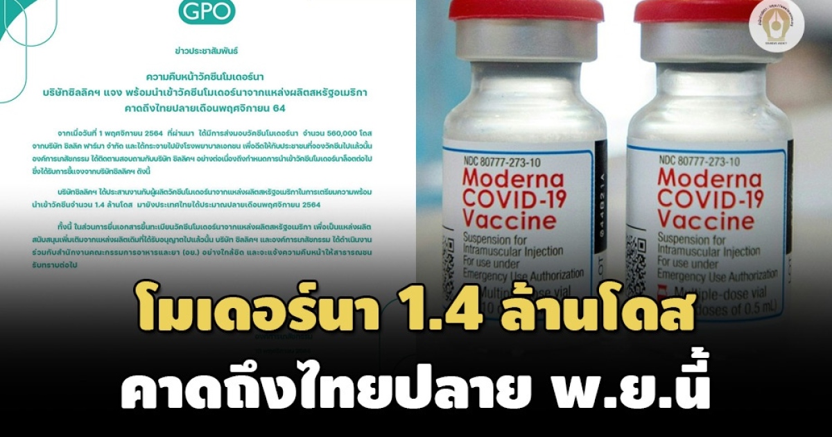 ผู้สื่อข่าวรายงานว่า เมื่อวันที่ 13 พ.ย. 2564 องค์การเภสัชกรรม แจ้งความคืบหน้าวัคซีนโมเดอร์นา ระบุว่า จากเมื่อวันที่ 1 พ.ย. 2564 ที่ผ่านมา ได้มีการส่งมอบวัคซีนโมเดอร์นา จำนวน 560,000 โดส จากบริษัท ซิลลิค ฟาร์มา จำกัด และได้กระจายไปยังโรงพยาบาลเอกชน เพื่อฉีดให้กับประชาชนที่จองวัคซีนไปแล้วนั้น