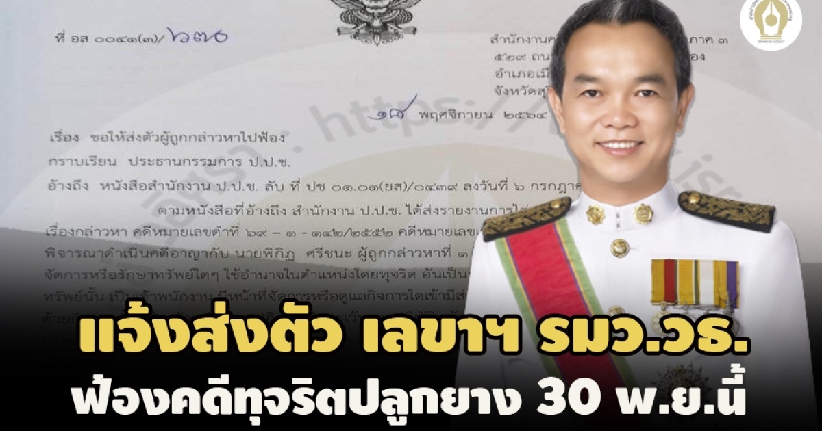 โดยขอให้ ป.ป.ช. ดำเนินการแจ้ง นายพิกิฏ ไปรายงานตัวต่อพนักงานอัยการ ในวันที่ 30 พฤศจิกายน 2564 เวลา 09.30 น. เพื่อดำเนินการฟ้องคดีด้วย (ดูหนังสือประกอบ)