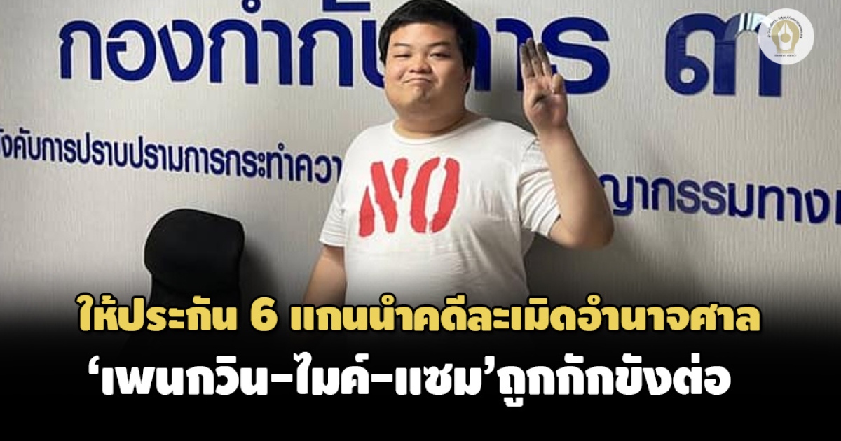 ศาลจังหวัดธัญบุรี ให้ประกัน 6 แกนนำม็อบราษฎร คดีละเมิดอำนาจศาล-เขียนผนังห้องควบคุม ส่วน 'เพนกวิน-ไมค์-แซม' ไม่ประสงค์ประกันตัว ถูกกักขังแทนโทษจำคุก 10 วัน