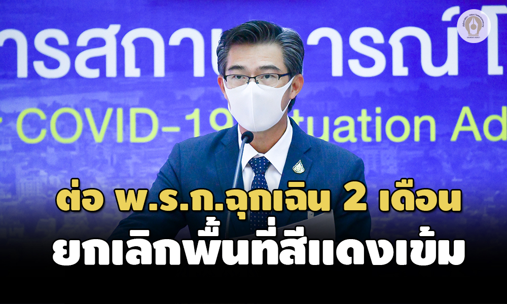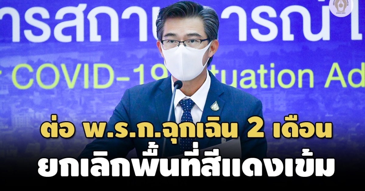 ศบค.เผยมติที่ประชุม ต่อ พ.ร.ก.ฉุกเฉินอีก 2 เดือน เห็นชอบให้ยกเลิกพื้นที่สีแดงเข้ม ขณะนี้ทั่วไทยจึงไม่มีเคอร์ฟิว พร้อมปรับมาตรการคัดกรองนักท่องเที่ยวตรวจแค่ ATK เพิ่มช่องทางเข้าไทยทางบก-ทางเรือ เดินหน้า MOU แรงงานข้ามชาติ 4 แสนคน