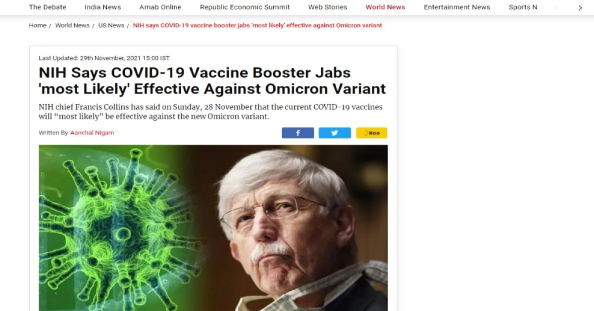 สำนักข่าวอิศรา (www.isranews.org) รายงานสถานการณ์ล่าสุดเกี่ยวกับการระบาดของไวรัสโควิด-19 หรือโคโรน่าไวรัสว่า นพ.ฟรานซิส คอลลินส์ หัวหน้าสถาบันแห่งชาติสหรัฐอเมริกาหรือ NIH ได้ออกมาให้สัมภาษณ์ยืนยันว่าวัคซันป้องกันไวรัสโควิด-19 ที่มีอยู่ในปัจจุบันนั้นดูเหมือนว่าจะมีประสิทธิภาพเป็นอย่างนิ่ง เมื่อต้องรับมือกับไวรัสโควิด-19 สายพันธุ์โอไมครอน
