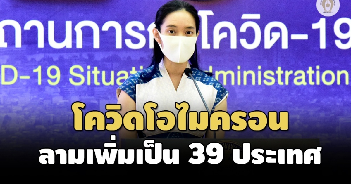 ผู้สื่อข่าวรายงานว่า เมื่อวันที่ 3 ธ.ค.2564 พญ.สุมนี วัชรสินธุ์ ผู้อำนวยการสำนักสื่อสารความเสี่ยงและพัฒนาพฤติกรรมสุขภาพ กรมควบคุมโรค ในฐานะผู้ช่วยรองโฆษกศูนย์บริหารสถานการณ์โควิด (ศบค.) รายงานสถานการณ์การระบาดของโควิดสายพันธุ์โอไมครอนว่า วันนี้พบผู้ติดเชื้อเพิ่มขึ่นเป็น 39 ประเทศ