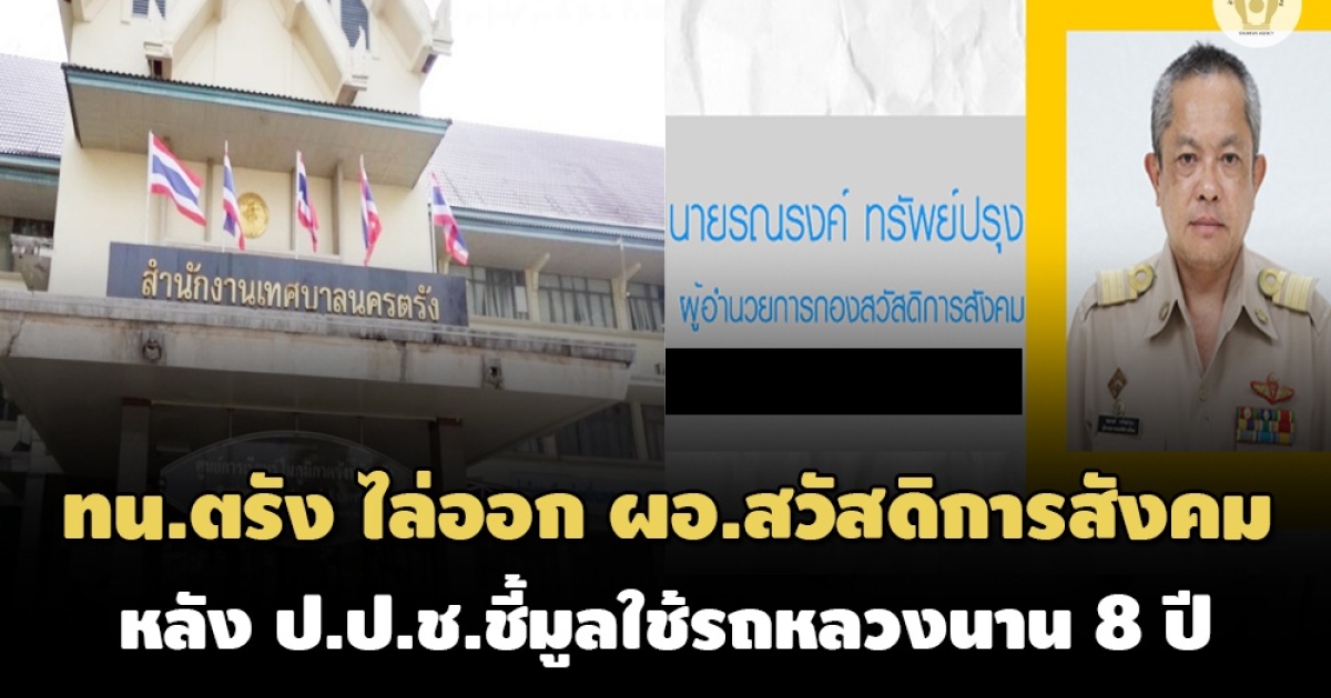“ทน.ตรัง” ลงโทษไล่ออกแล้ว ผอ.กองสวัสดิการสังคม เทศบาลนครตรัง นำรถหลวงไปบ้านเมีย เบิกน้ำมันหลวงเดือนละ 100 ลิตร ยาวนานกว่า 8 ปี หลังถูก “ป.ป.ช.” ชี้มูล ใช้รถราชการเสมือนรถส่วนตัว
