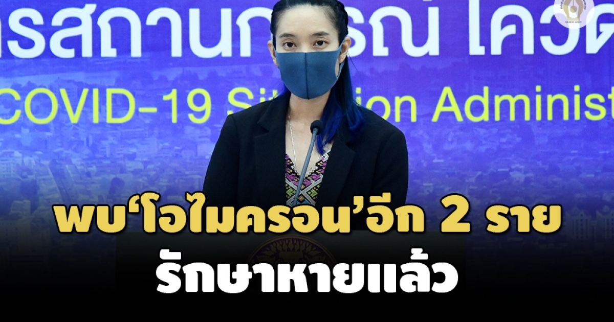 ‘พญ.สุมนี’แถลงข่าวพบผู้ติดเชื้อโควิดเพิ่มอีก 2 ราย เป็นหญิงไทยอาชีพล่าม เดินทางกลับจากไนจีเรีย เข้ารักษาตัวตั้งแต่ 23 พ.ย.64 ตรวจหาเชื้อพบความเป็นไปได้สูงติดโอไมครอน รอยืนยันผลอีก 2 วัน ปัจจุบันรักษาหายแล้ว รอคุมสังเกตอีก 7 วัน
