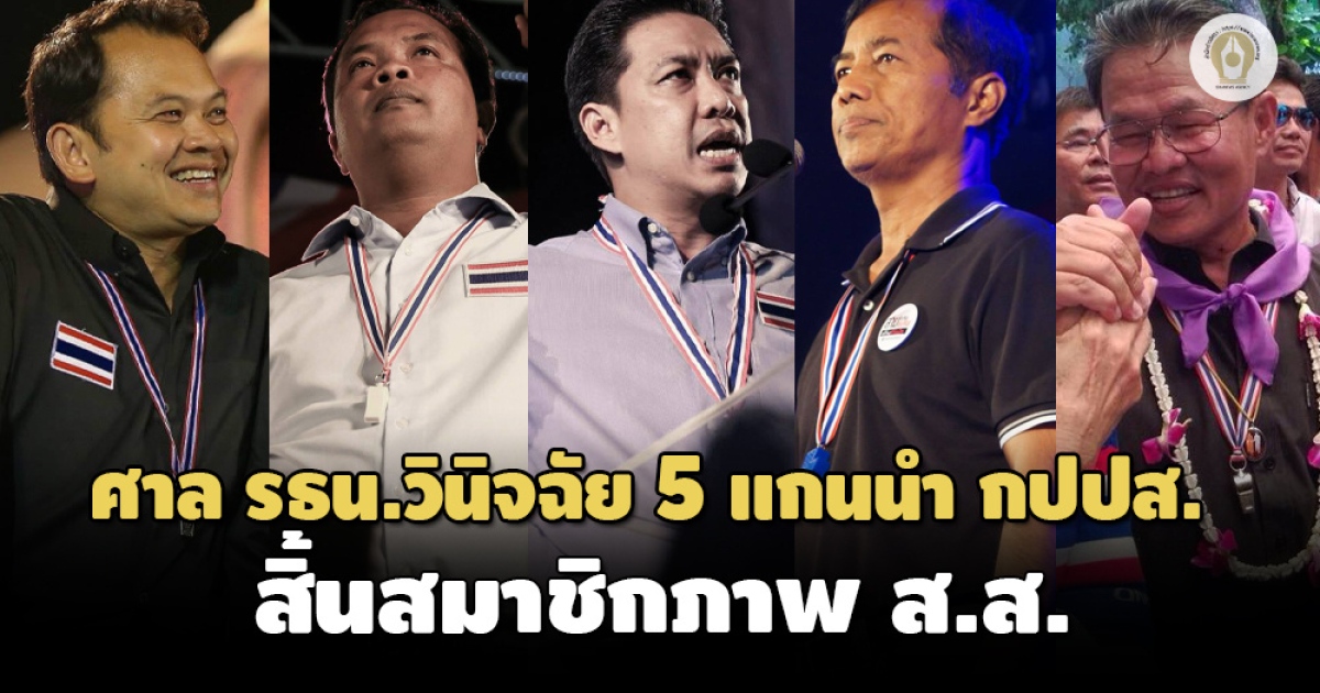 ทั้งนี้ ศาลรัฐธรรมนูญ มีคำวินิจฉัยให้สมาชิกภาพการเป็น ส.ส.ของ 5 แกนนำ กปปส. สิ้นสุดลงตามรัฐธรรมนูญ ดังนี้