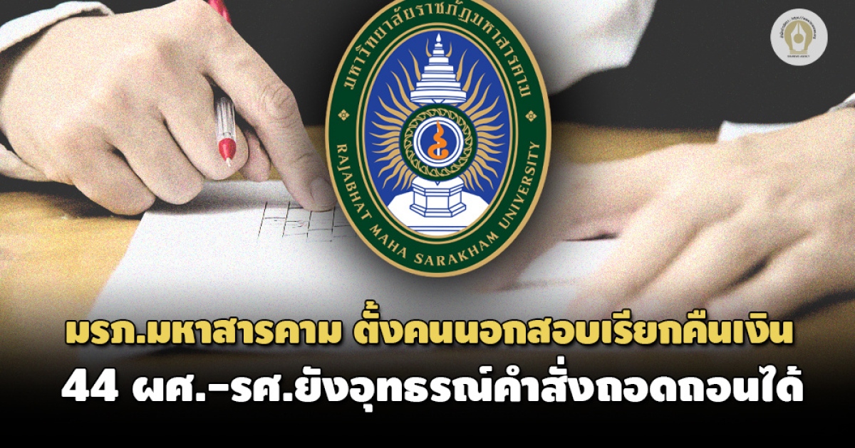 มรภ.มหาสารคาม เตรียมหาคนนอกนั่งกรรมการสอบละเมิด-เรียกคืนเงินประจำตำแหน่ง 44 ผศ.-รศ. ทั้งหมดยังใช้สิทธิ์อุทธรณ์ และให้ข้อมูลเพื่อแสดงความไม่มีส่วนเกี่ยวข้องได้