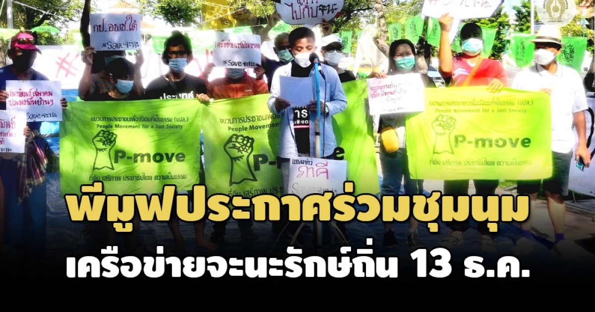 พีมูฟประกาศต่อสู้เคียงบ่าเคียงไหล่ เข้าร่วมชุมนุมเครือข่ายจะนะรักษ์ถิ่น หน้าทำเนียบรัฐบาล 13 ธ.ค.นี้ ทวงคืนที่ดินและทรัพยากร เรียกร้องยุติการดำเนินคดีเครือข่ายจะนะรักษ์ถิ่น 37 คน